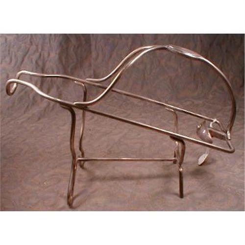 Add this elegant machine age style wine holder to serve wine at your next dinner. This silverplate caddy holds the bottle at the proper angle for easy pouring and gives you a handle for a secure grip. There is a propeller device in the back of the caddy to tighten the bottle in place in the holder.