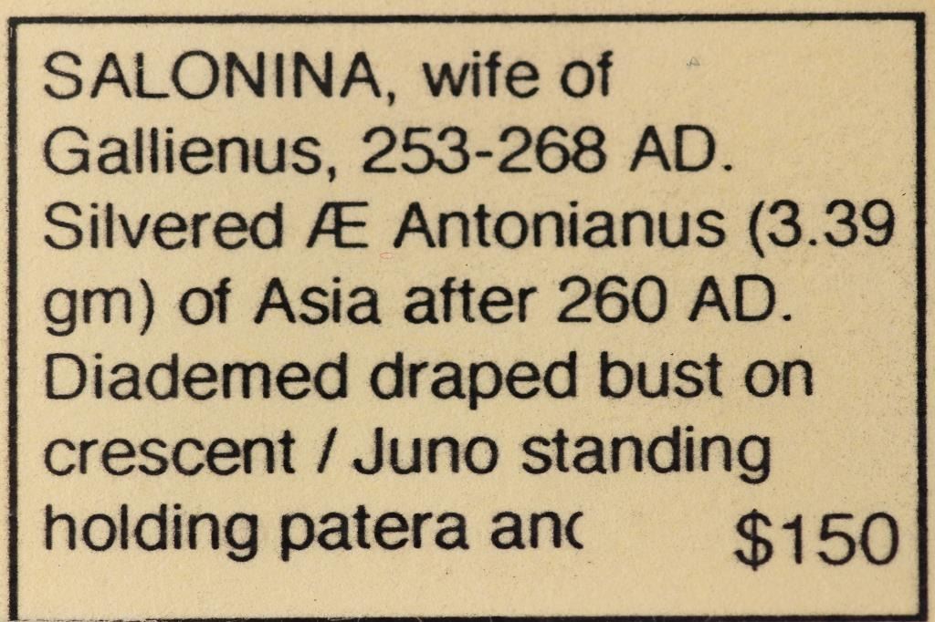 SILVERED 253-268 A.D. SALONINA WIFE OF GALLIENUS