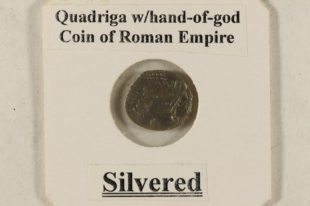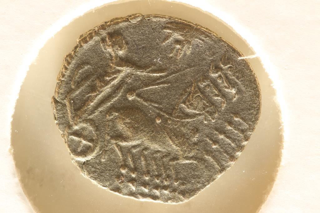 ANCIENT COIN WITH QUADRIGA ON REVERSE