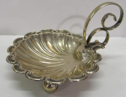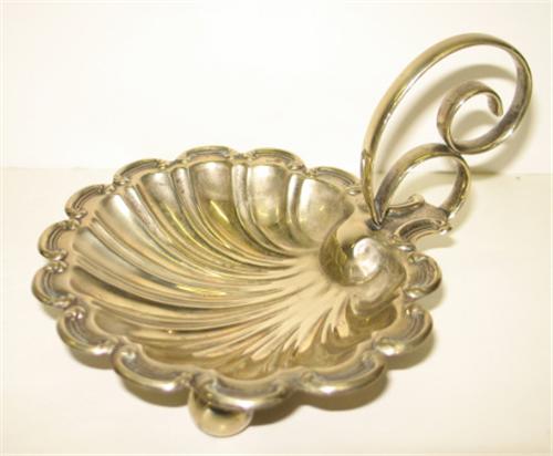 SILVERPLATE SHELL FORM MINT DISH. Small amount of tarnishing. Marked “Made in England” along outside edge. 4” H, 6.25” Dia.
