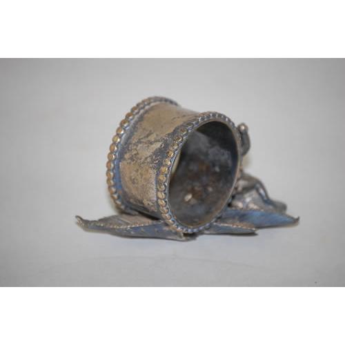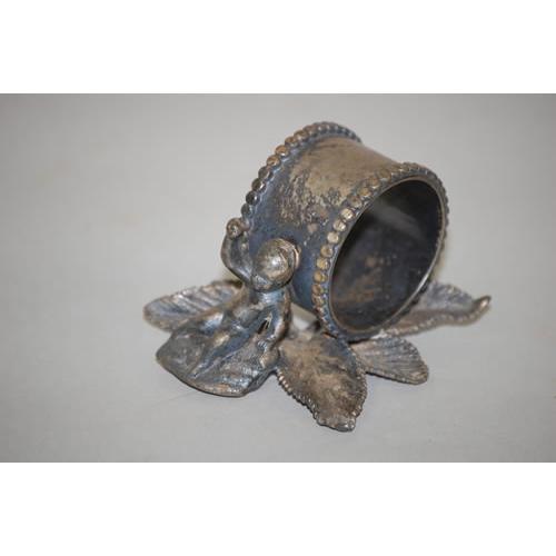 SILVERPLATED FIGURAL NAPKIN RING - VICTORIAN SILVERPLATED FIGURAL NAPKIN RING W/ PUTTI ON ROCKS & FOLIAGE-VAN BERGH SILVERPLATED CO. ROCHESTER NY - WEAR & PLATING LOSSES