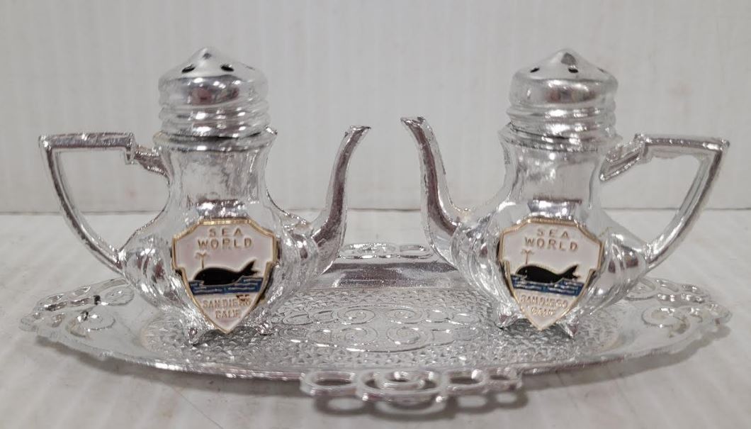 SILVERTONE SEAWORLD S + P SHAKERS ON TRAY
