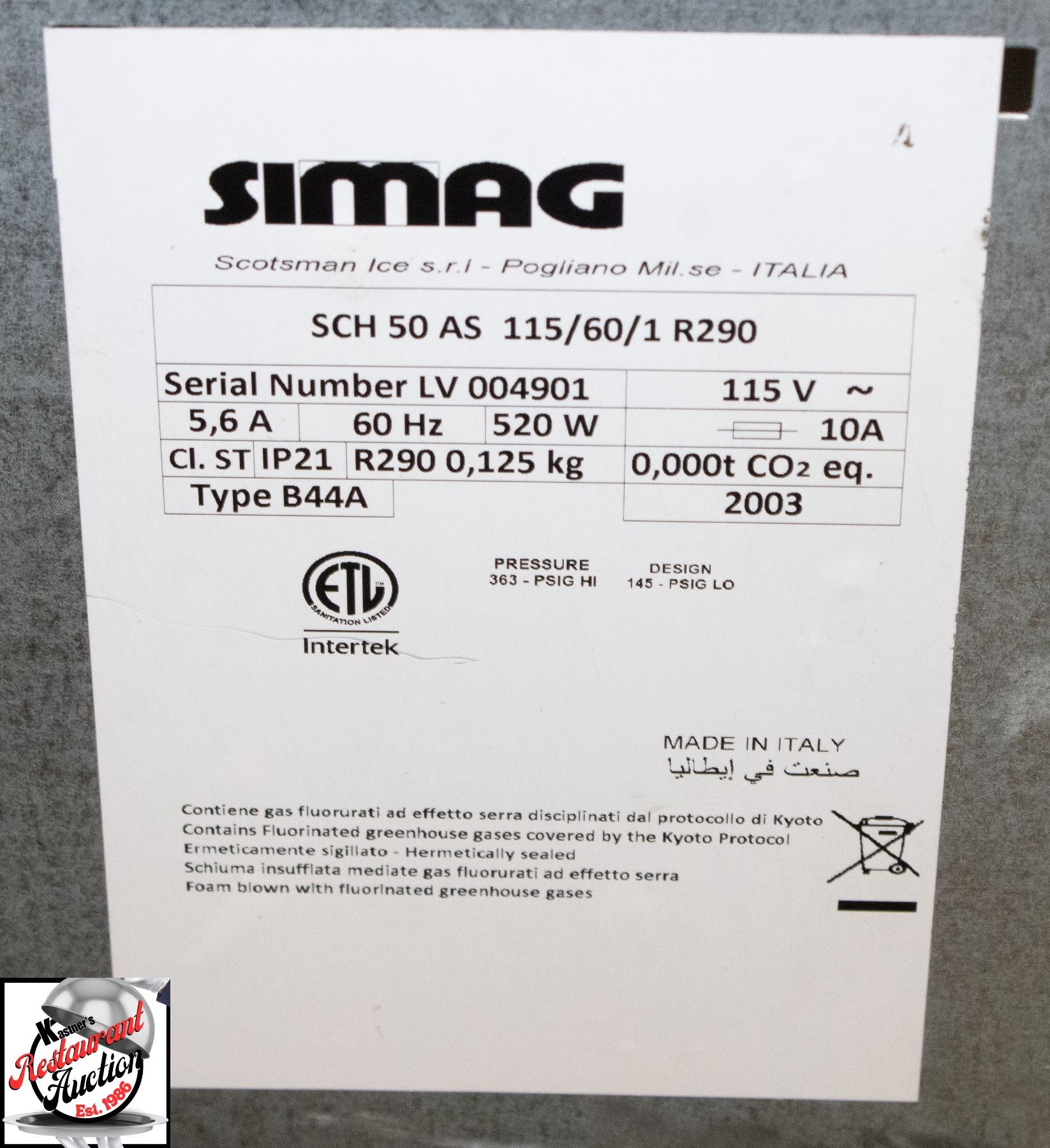 SIMAG AIR COOLED UNDER COUNTER ICE MACHINE