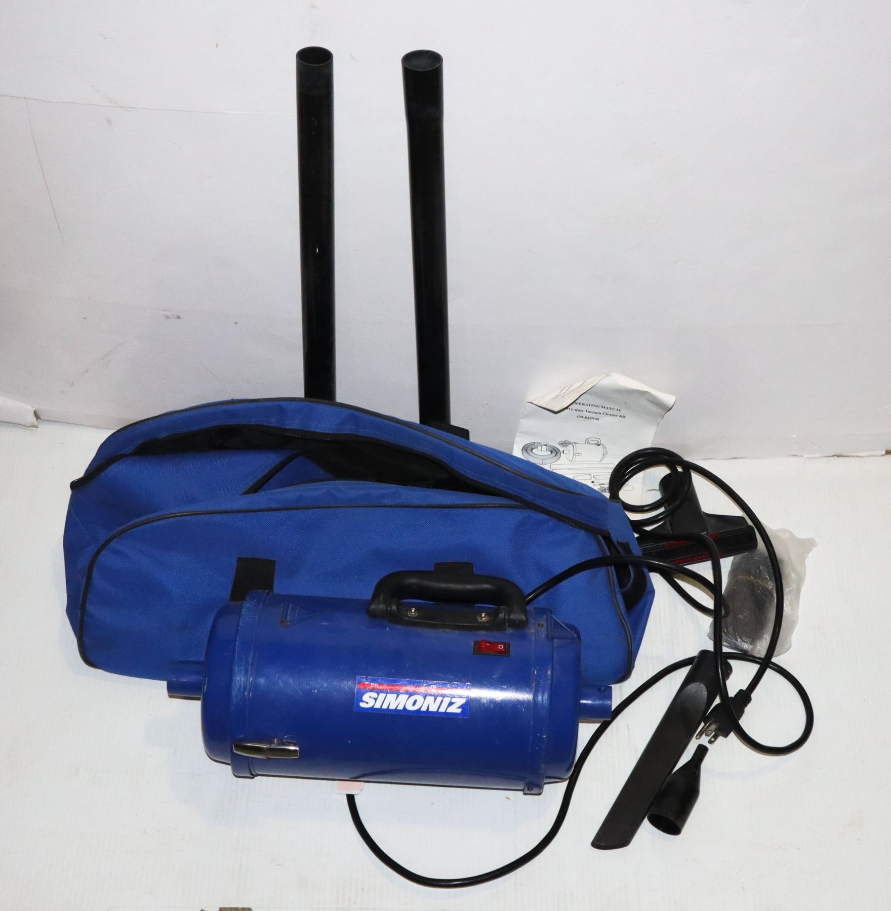WITH CARRY BAG AND OPERATING MANUAL. ZIPPER ON BAG NEEDS REPAIR. TESTED, WORKING. NEEDS MINOR ADJUSTMENT TO KEEP BAG COMPARTMENT CLOSED