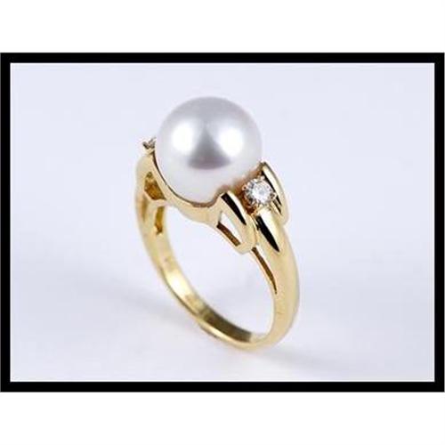 <tr><td>Title:SIMPLE 14K YELLOW GOLD PEARL AND DIAMOND RING</td></tr>