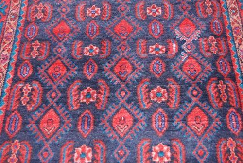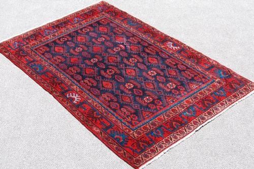 SIMPLY BEAUTIFUL HANDWOVEN SEMI ANTIQUE AFSHAR RUG. SIZE 4.6 X 7 FEET, COLOR NAVY BULE AND RED KNOT TECHNIQUE 100% HAND KNOTTED RUG FOUNDATION COTTON PILE 100% FINE WOOL, ALLOVER DESIGN. COUNTRY OF ORIGIN: IRAN.