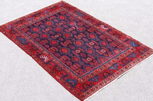 SIMPLY BEAUTIFUL HANDWOVEN SEMI ANTIQUE AFSHAR RUG. SIZE 4.6 X 7 FEET, COLOR NAVY BULE AND RED KNOT TECHNIQUE 100% HAND KNOTTED RUG FOUNDATION COTTON PILE 100% FINE WOOL, ALLOVER DESIGN. COUNTRY OF ORIGIN: Iran.