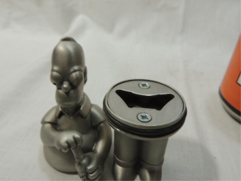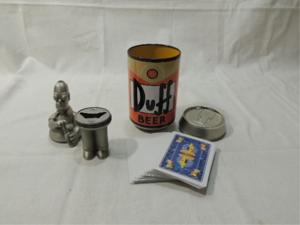 SIMPSONS COLLECTABLES. METAL HOMER FIGURE/ CAN OPENER. DUFF BEER DECK OF CARDS SEE PICTURE FOR DETAILS.