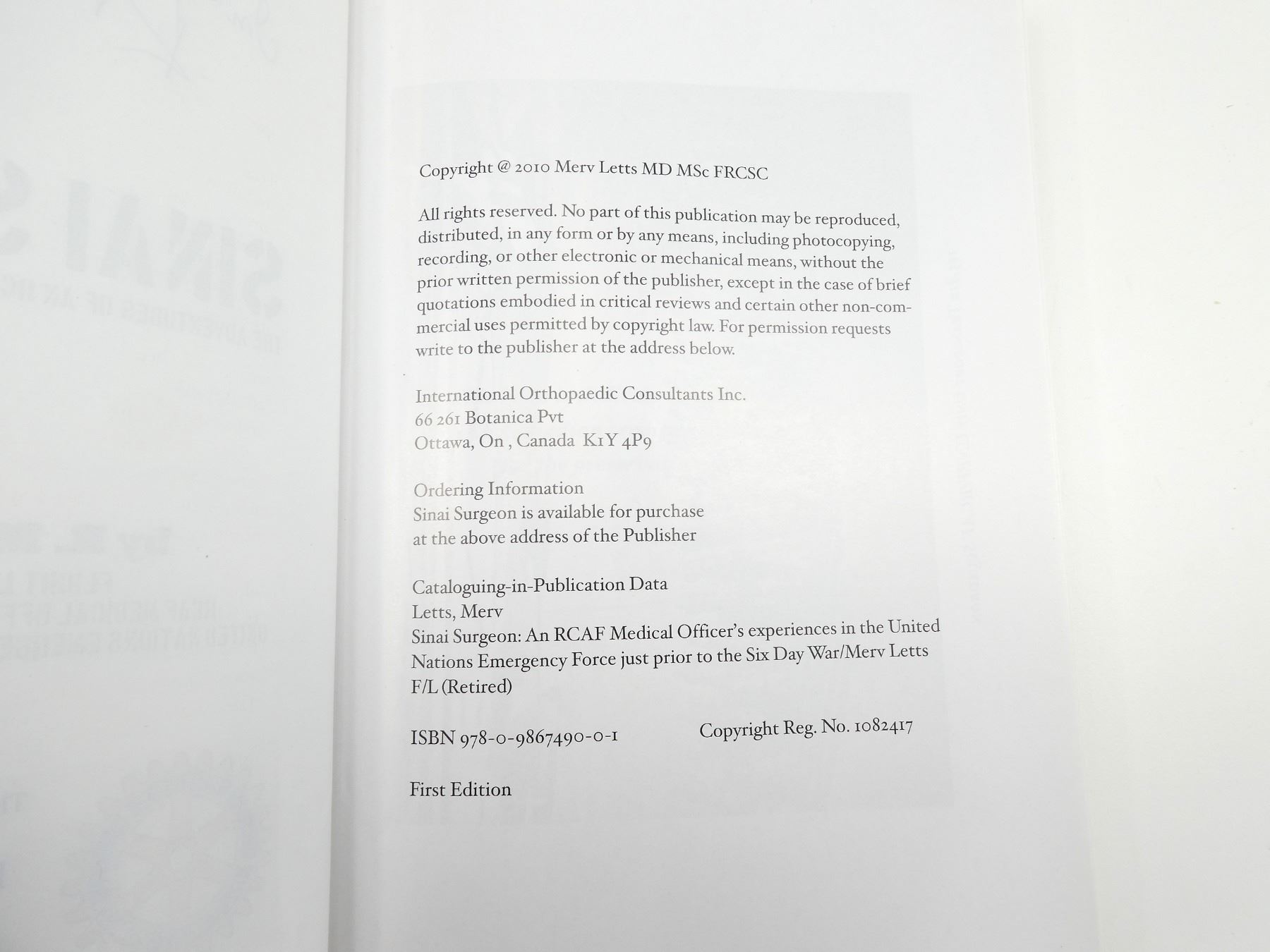 "SINAI SURGEON, THE ADVENTURES OF AN RCAF MEDICAL OFFICER WITH THE UNEF" BOOK