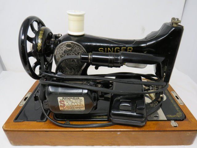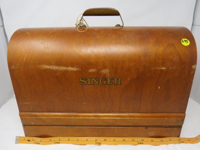 SINGER SEWING MACHINE (WITH LOCKING WOOD CASE) *NO 127-128 WITH ACCESSORIES*