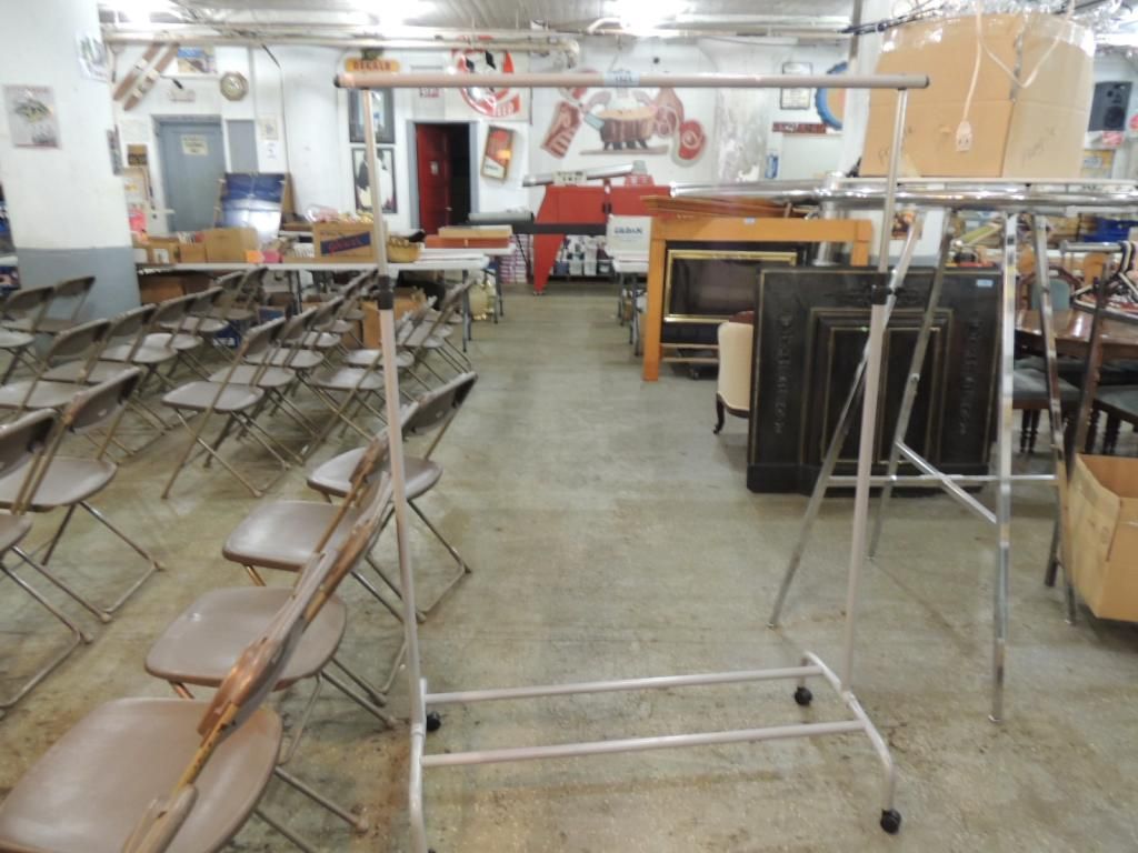 SINGLE BAR ADJUSTABLE CLOTHES RACK ON WHEELS.