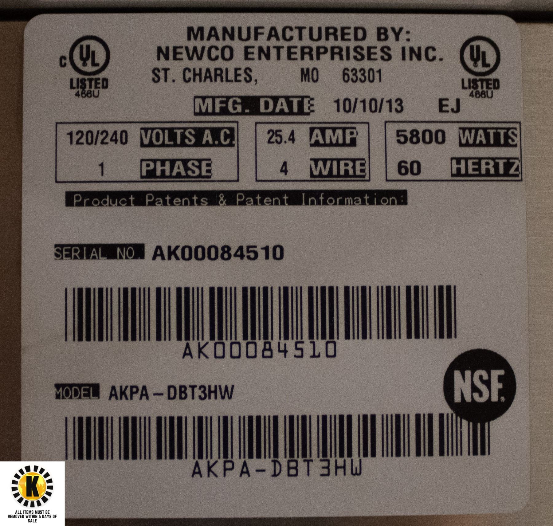 MOD ARPA-DBT3HW, 120-210 V, 25.4 AMP, 5800 W, PH 1, 4 WIRE, 60 Hz, 25x9x25
