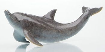 SINGLE DOLPHIN BRONZE SCULPTURE - 2"H 5.5"W 2 "D - GREAT ATTENTION TO DETAIL - BEAUTIFUL FINISH - LOST WAX CAST