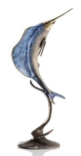 SINGLE SAILFISH BRONZE SCULPTURE - 12"H 5"W 3 "D - GREAT ATTENTION TO DETAIL - BEAUTIFUL FINISH - LOST WAX CAST