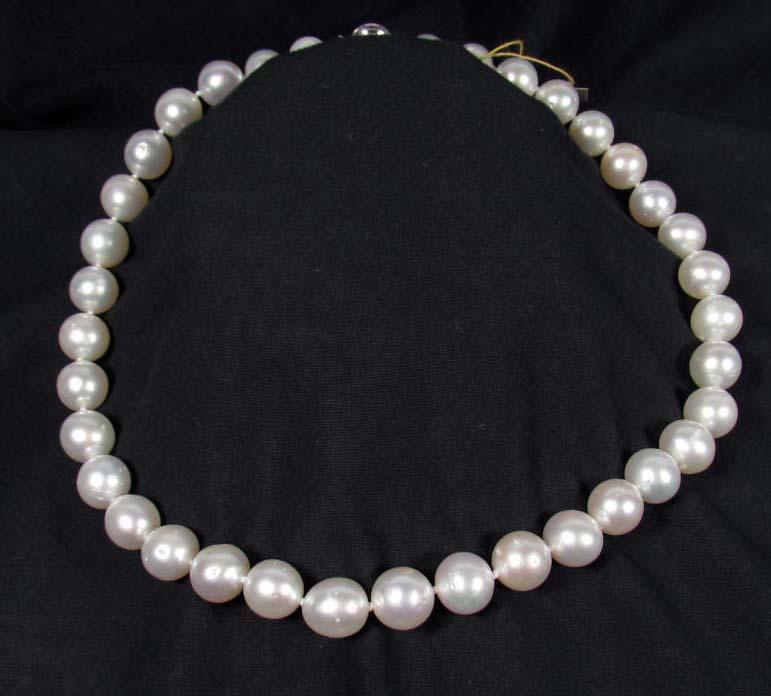 Comes w/ AIG Appraisal of $9,100.00. 36 south sea cultured pearls 9.00mm - 11.00mm w/ 14K white gold scalloped plunger style clasp.