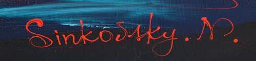 Artist: Natalia Sinkovsky - Title: Sailing #6 - Medium: Original Acrylic on Canvas - Signature: This one-of-a-kind work is hand-signed by the artist at the bottom of the image - Image Size: Approximately 20 inches x 40 inches - Unframed on Unstretched Canvas - Details: This work comes with a Certificate of Authenticity - Biography: Natalia Sinkovsky was born in March 11 1959 in Semipalatinsk, Kazakhstan. She studied music and art throughout her childhood and teenage years. In 1976, she enrolled in the Ust-Kamenogorsk Building Institute (department of Architecture), and graduated in 1981 with a second (Master's) degree in Architecture. Later she worked as a professional architect in various bureaus. In 1995, Natalia repatriated to Israel, defended her diploma and finished IT courses for architects. She worked as an architect, designing buildings, villas, and interiors. She has been professionally working as a designer, sculptor and artist, as well as participating in exhibitions, since 2002. -