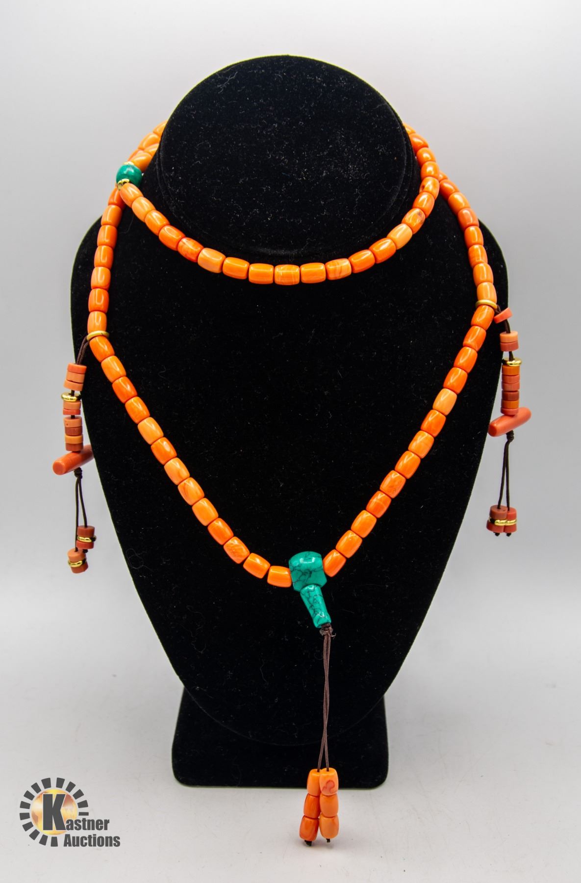 A SINO-TIBETAN CORAL BEADS PRAYER NECKLACE **ALL ITEMS MUST BE REMOVED BY 5PM SATURDAY, SEPTEMBER 30TH 2023. ALL REMAINING ITEMS WILL BE SUBJECT TO A $6.00 PER DAY STORAGE CHARGE. ANY ITEMS REMAINING AFTER MONDAY, OCTOBER 16TH, 2023 WILL BE CONSIDERED FORFEITED. NO REFUNDS WILL BE ISSUED FOR FORFEITED ITEMS. TO SCHEDULE A PICK UP APPOINTMENT CLICK HERE