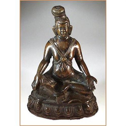 Please note that for Ebay Live Auction only bids at or over $1900 will be succesfull and meet our reserve.... Rare antique bronze statue what is believe to be of Sino-Tibetian origin. Hollow cast, bottom is closed with thin copper? cover, chased with figure. Considering its age, condition is very good. Dimension : 7" high, 4-3/4" wide, 18-19 Century. If any of you - knowledgeable Collectors or dealers specializing in this field may have additional imput, please let us know...your information will be greatly appreciated.