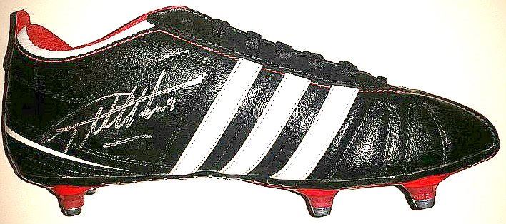 A Soccer/Football boot signed by England legend Sir Geoff Hurst. Condition Report: Very good