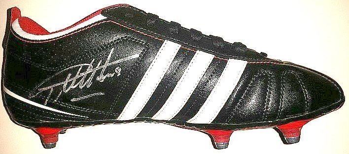 A Soccer/Football boot signed by England legend Sir Geoff Hurst.
