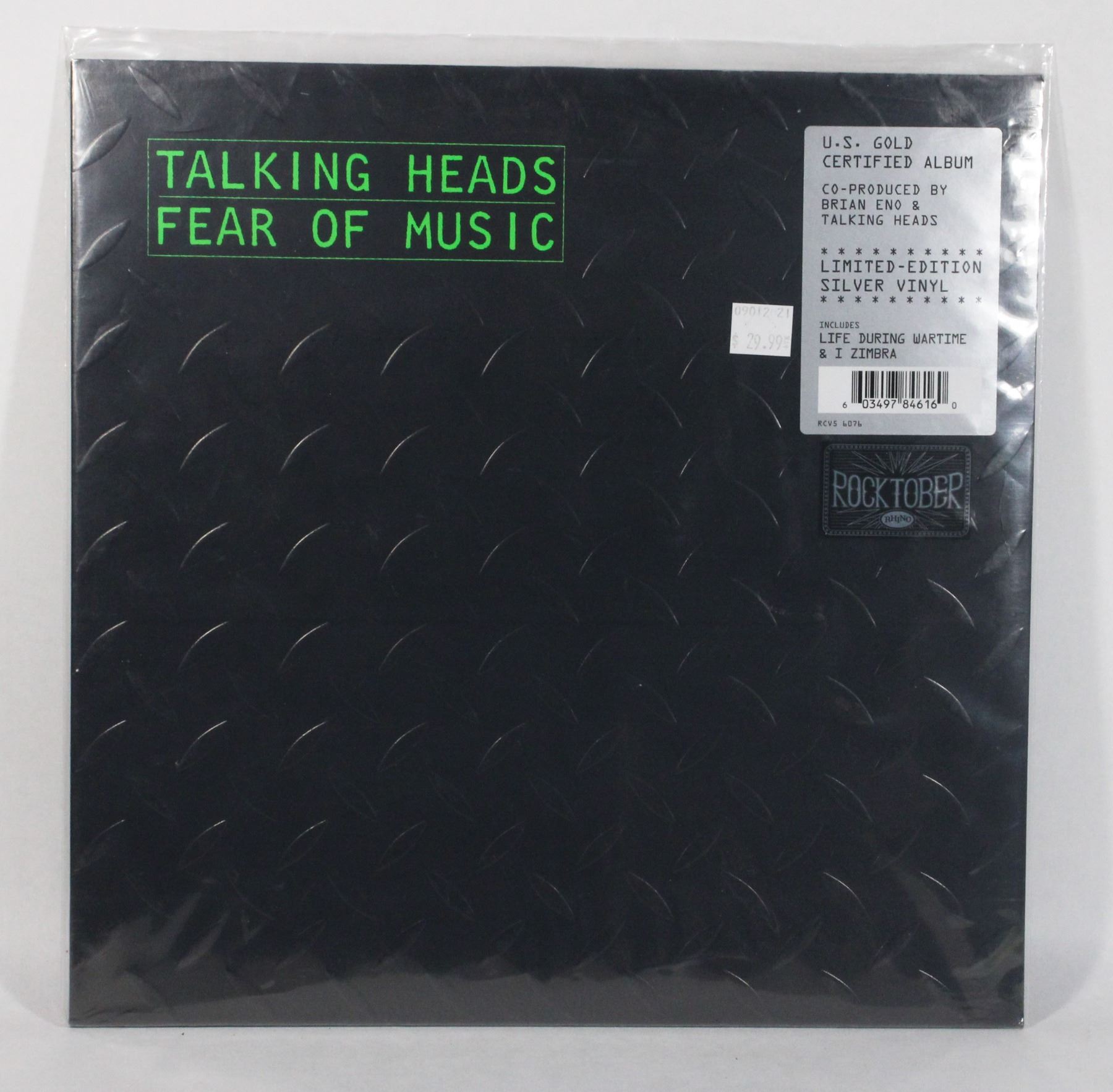 HEADS FEAR OF MUSIC U.S GOLD CERTIFIED ALBUM, CO-PRODUCED BY BRIAN ENO AND TALKING HEADS. LIMITED EDITION SILVER VINYL. IN PLASTIC SLEEVE