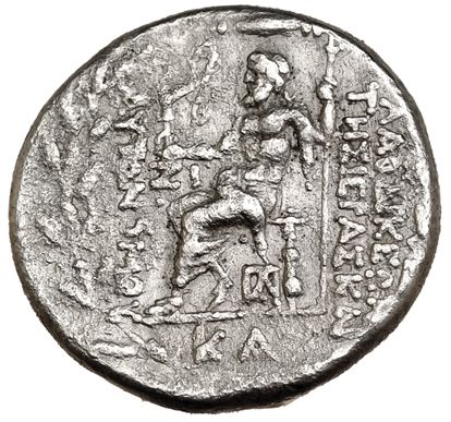 SIRIA. Laodikea. Tetradracma (S. I a.C.). R/ Zeus sentado a izq., ZI a izq., monograma a der. y KA en el exergo. AR 14,4 g. COP-318 vte. MBC/MBC-.