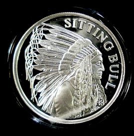 "SITTING BULL" FEATURED ON A ONE OUNCE.999 SILVER ART ROUND, IN BOX AND CAPSULE