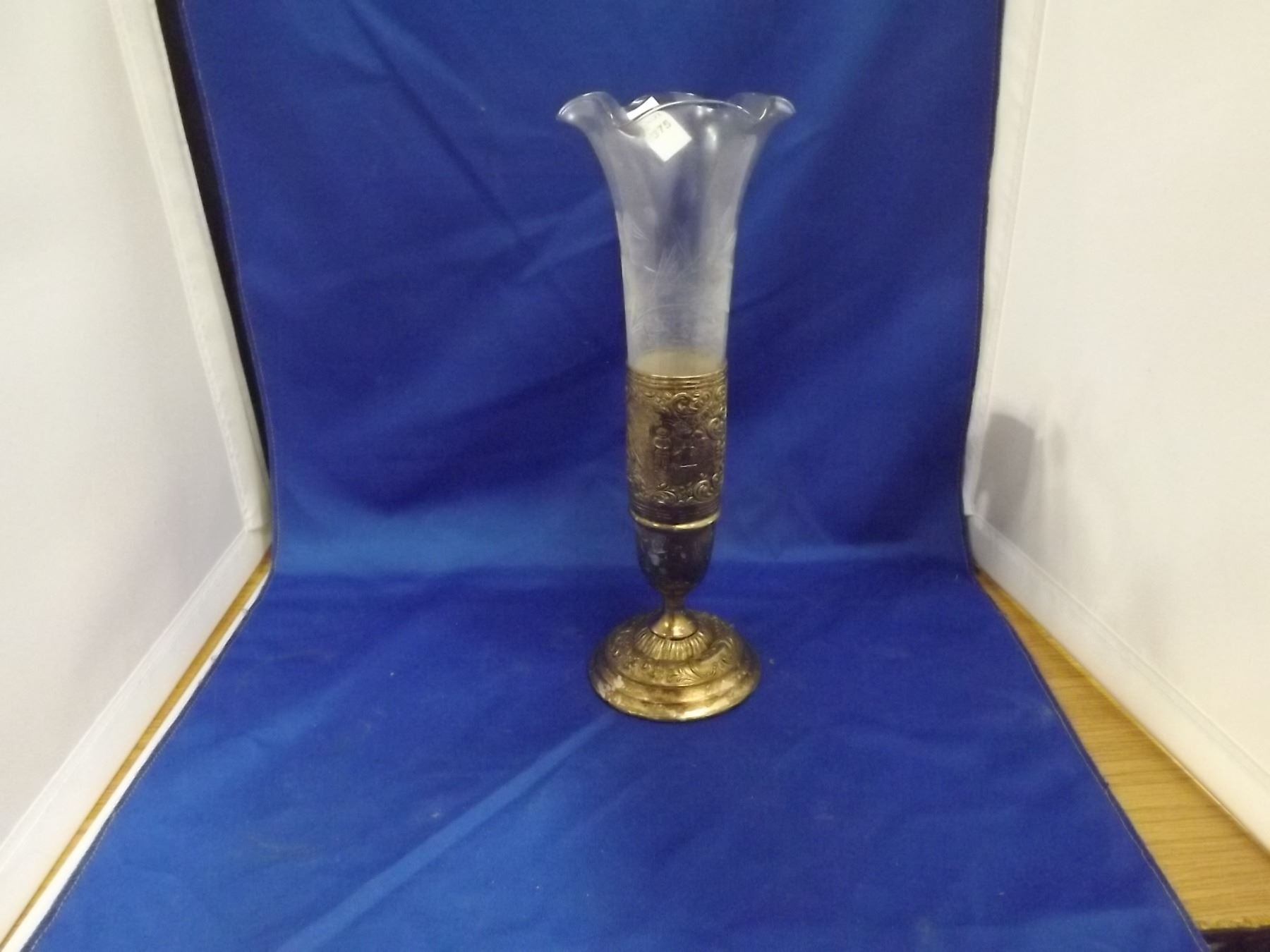SIVLER PLATEDVASE WITH ETCHED GLASS