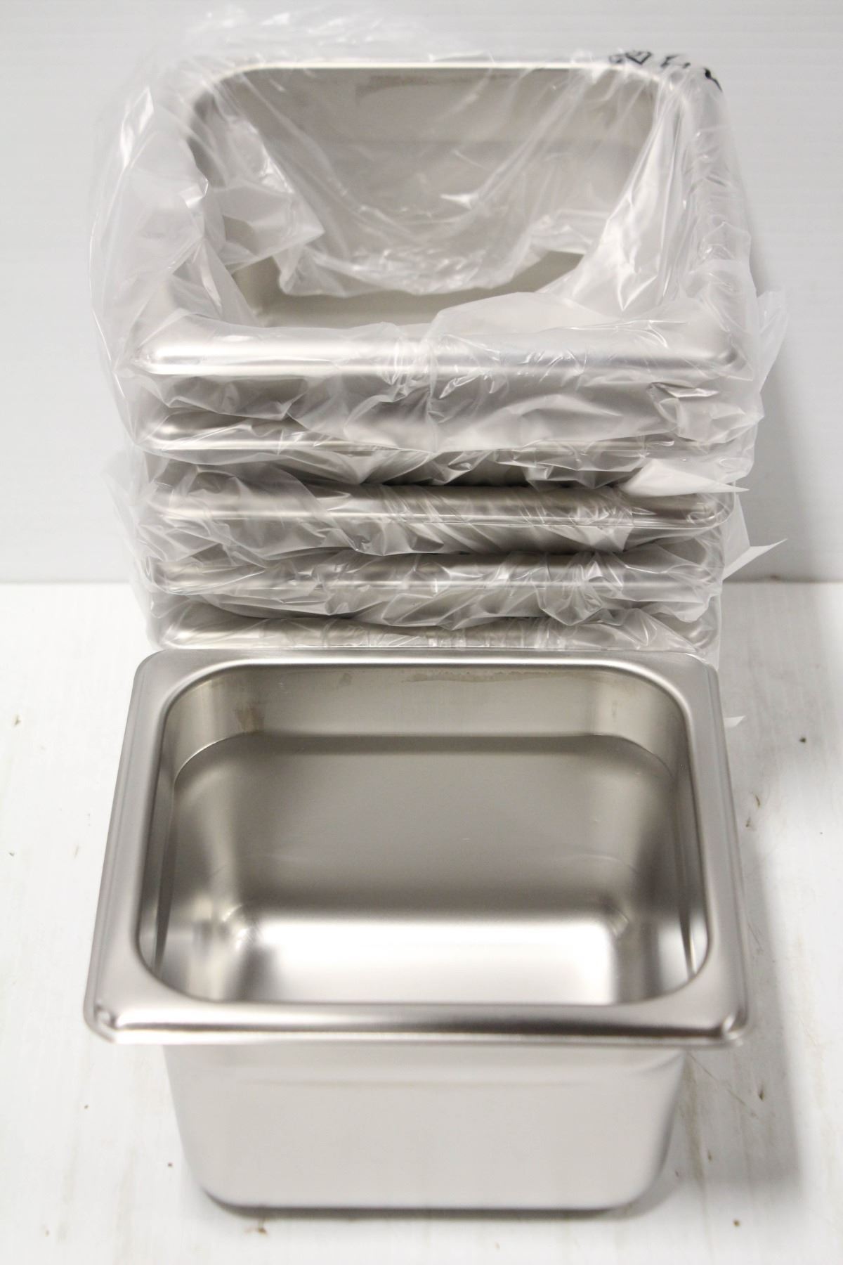SIX 1/6 NEW SIZE STAINLESS STEEL FOOD INSERTS - 4