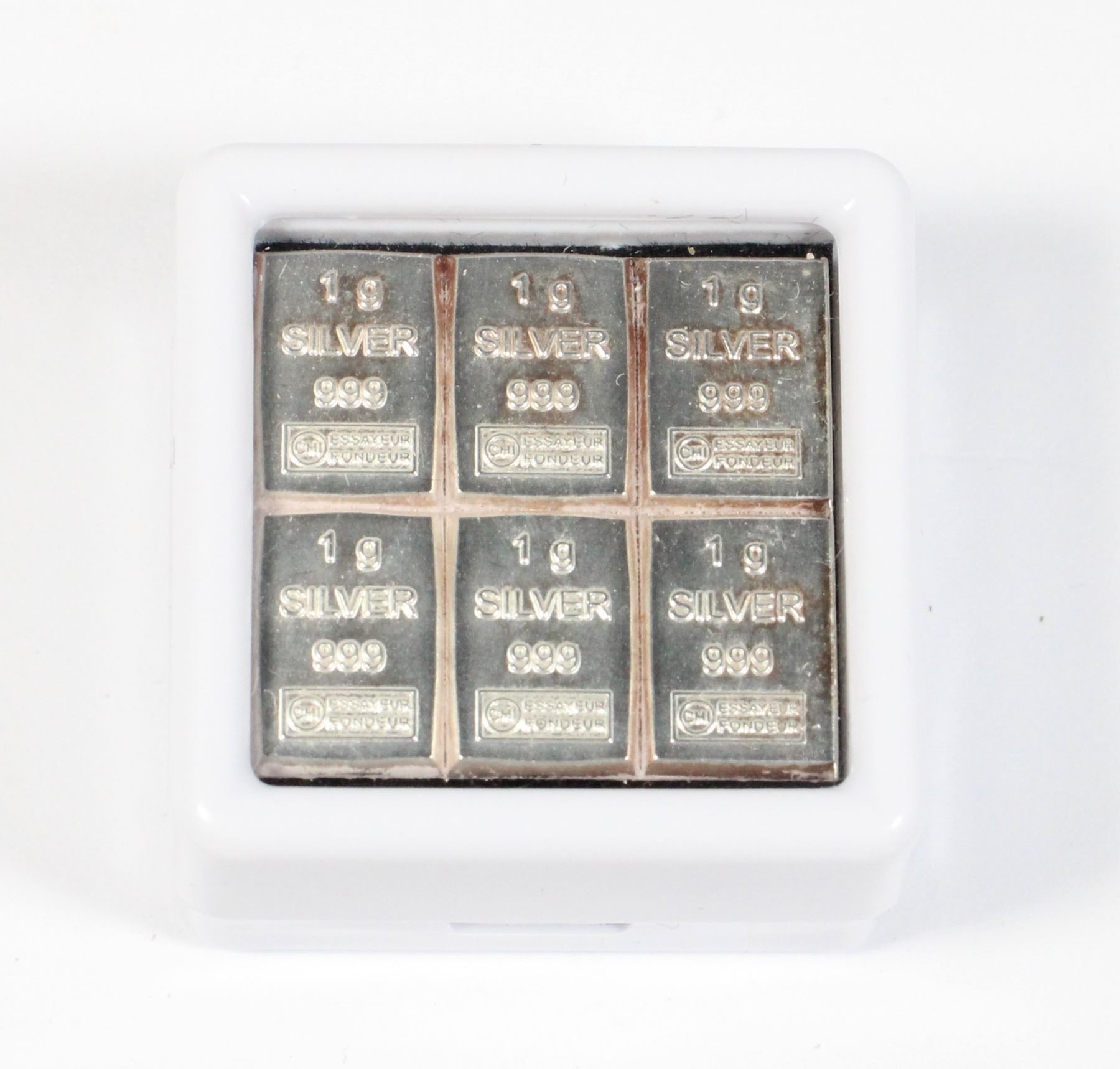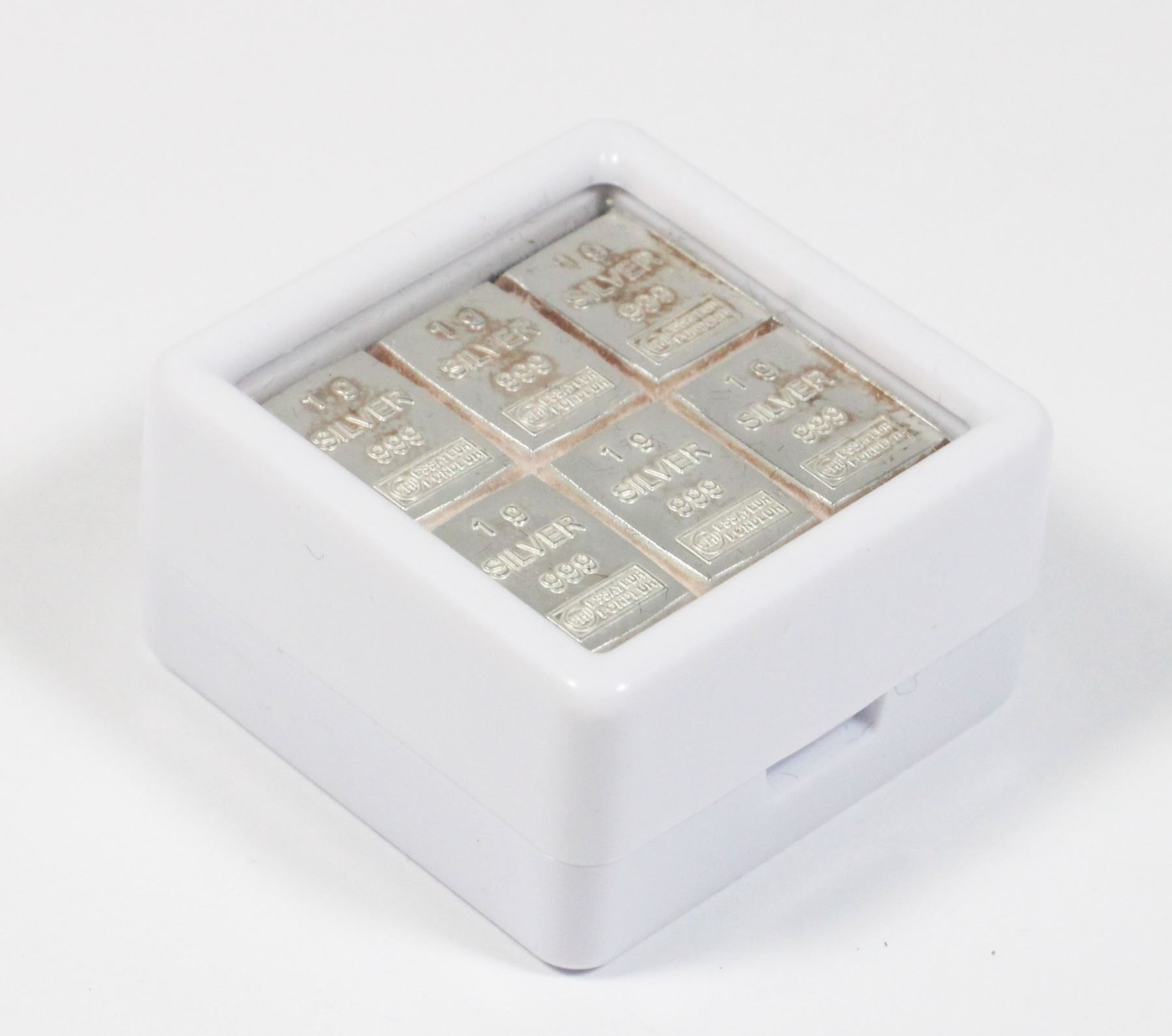 SIX 1 GRAM SILVER BARS IN GEMSTONE DISPLAY BOX