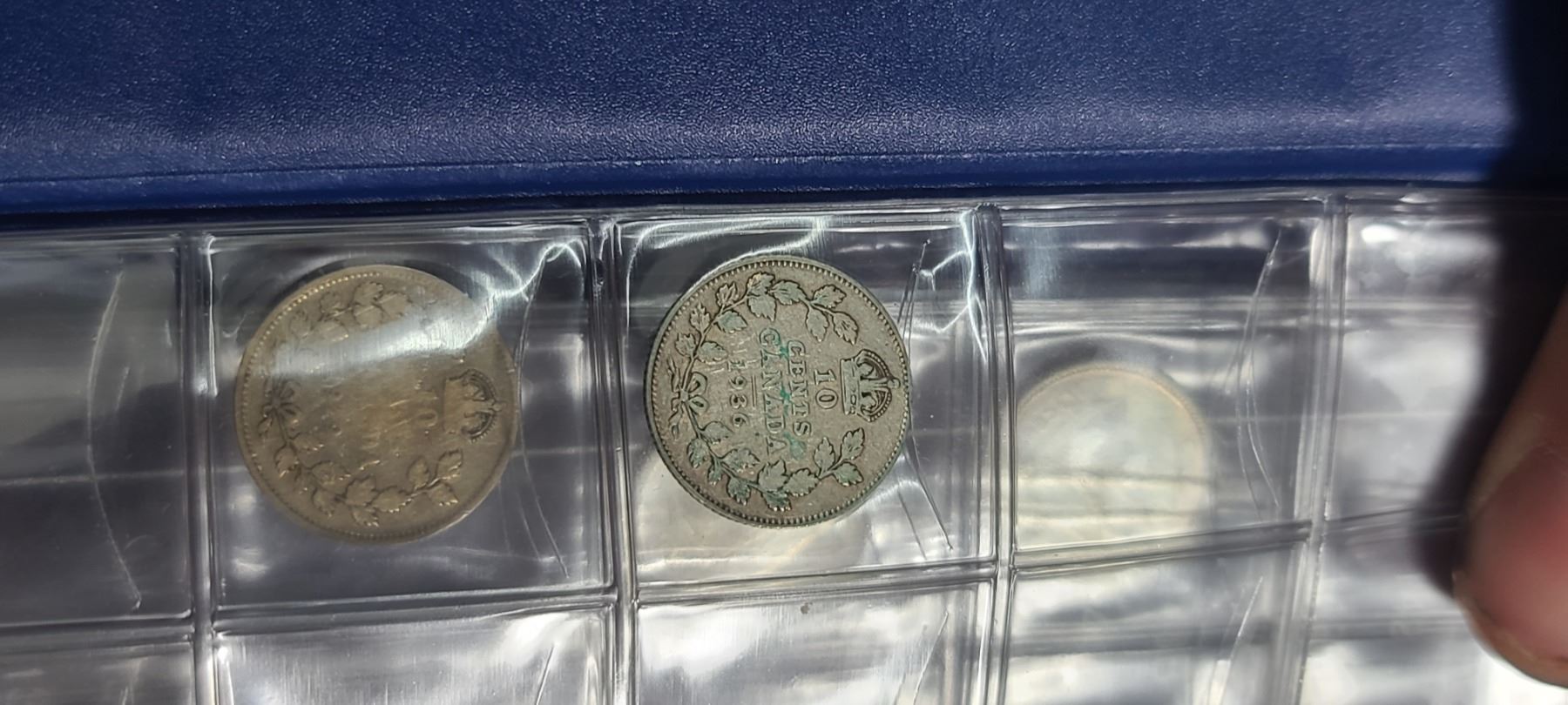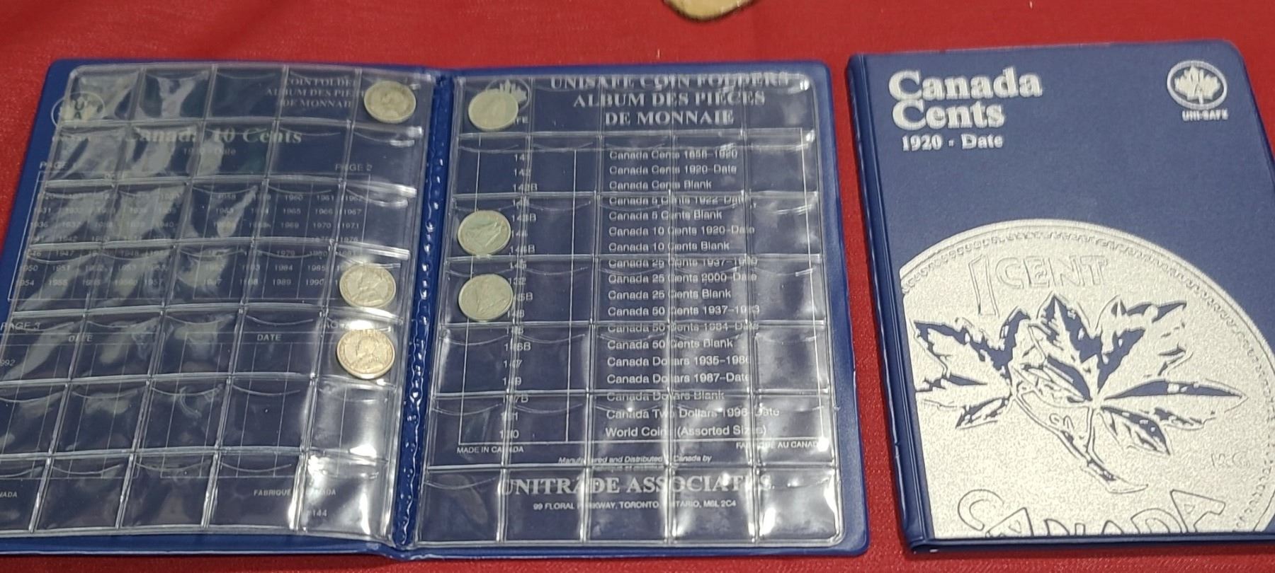 SIX 10 CENTS: 1920, 36, 43 AND TWO1949, 1950 AND TWO COIN FOLDERS