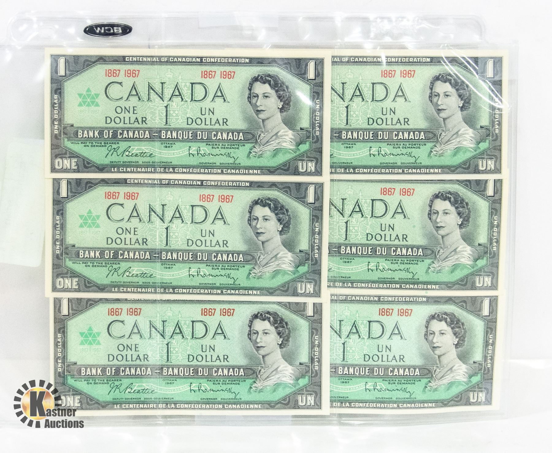 SIX 1867-1967 CENTENIAL $1 NOTES