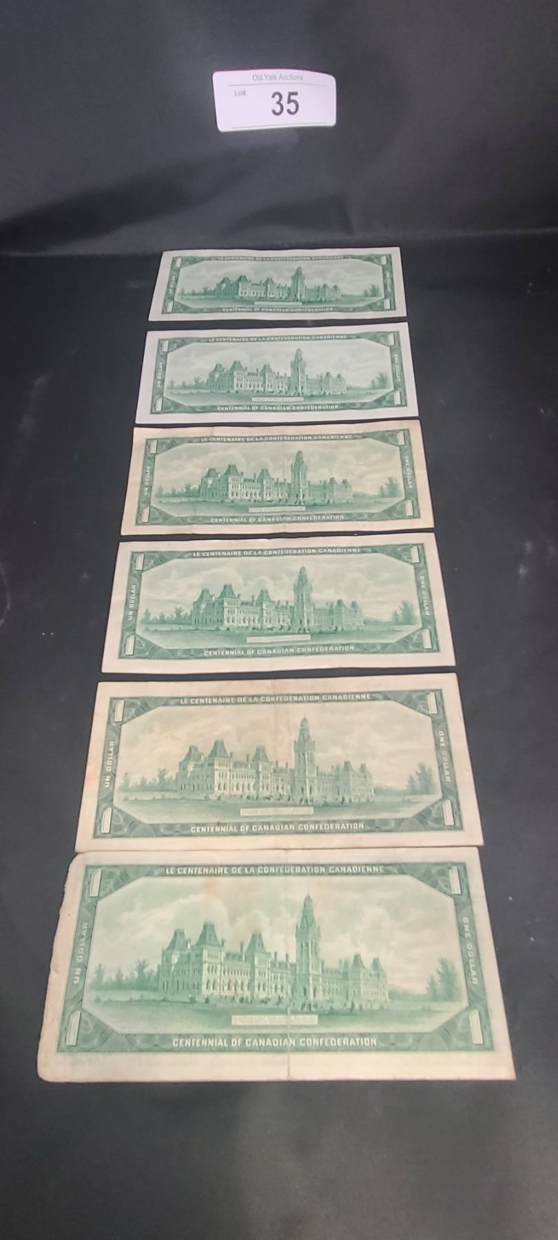 SIX 1967 CANADIAN CENTENNIAL $1 BANK NOTES