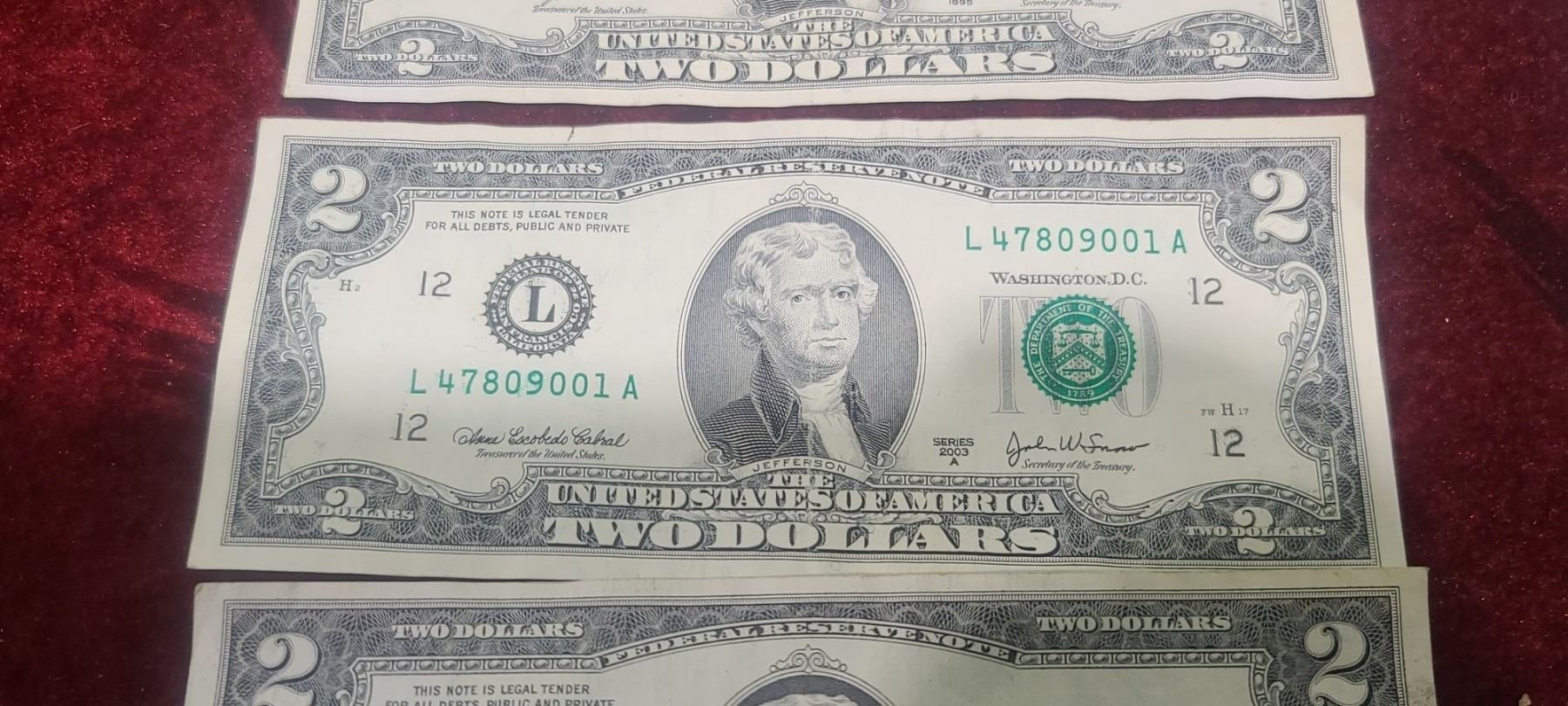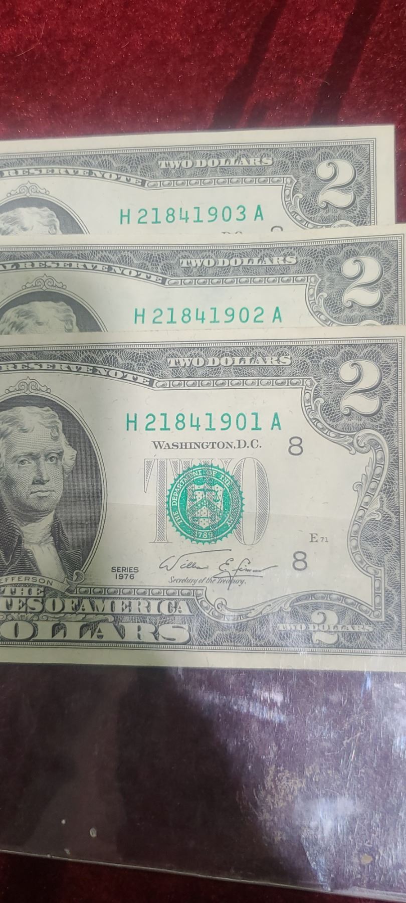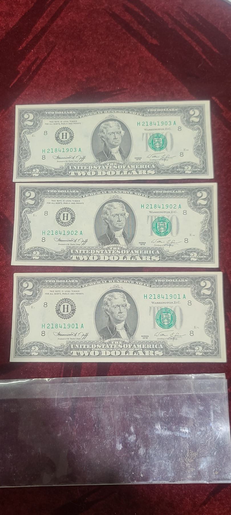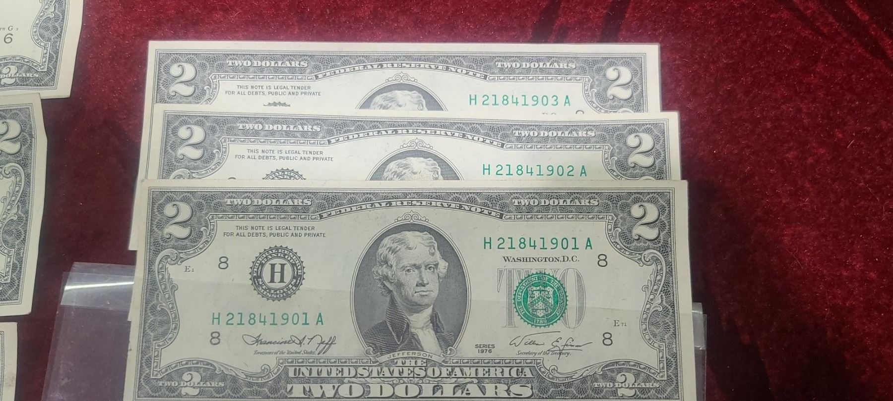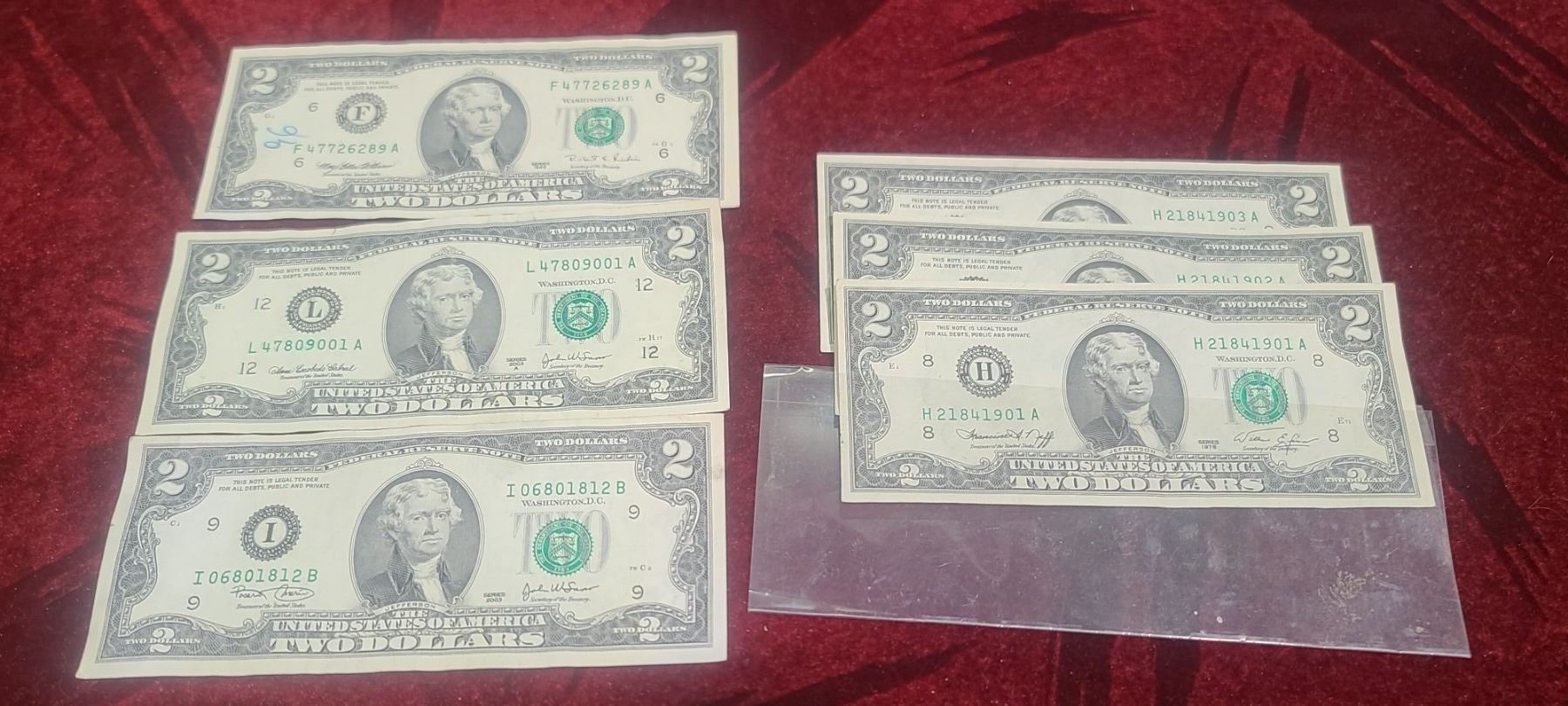SIX $2 BILLS - THREE OF THE NOTES ARE SEQUENTIAL
