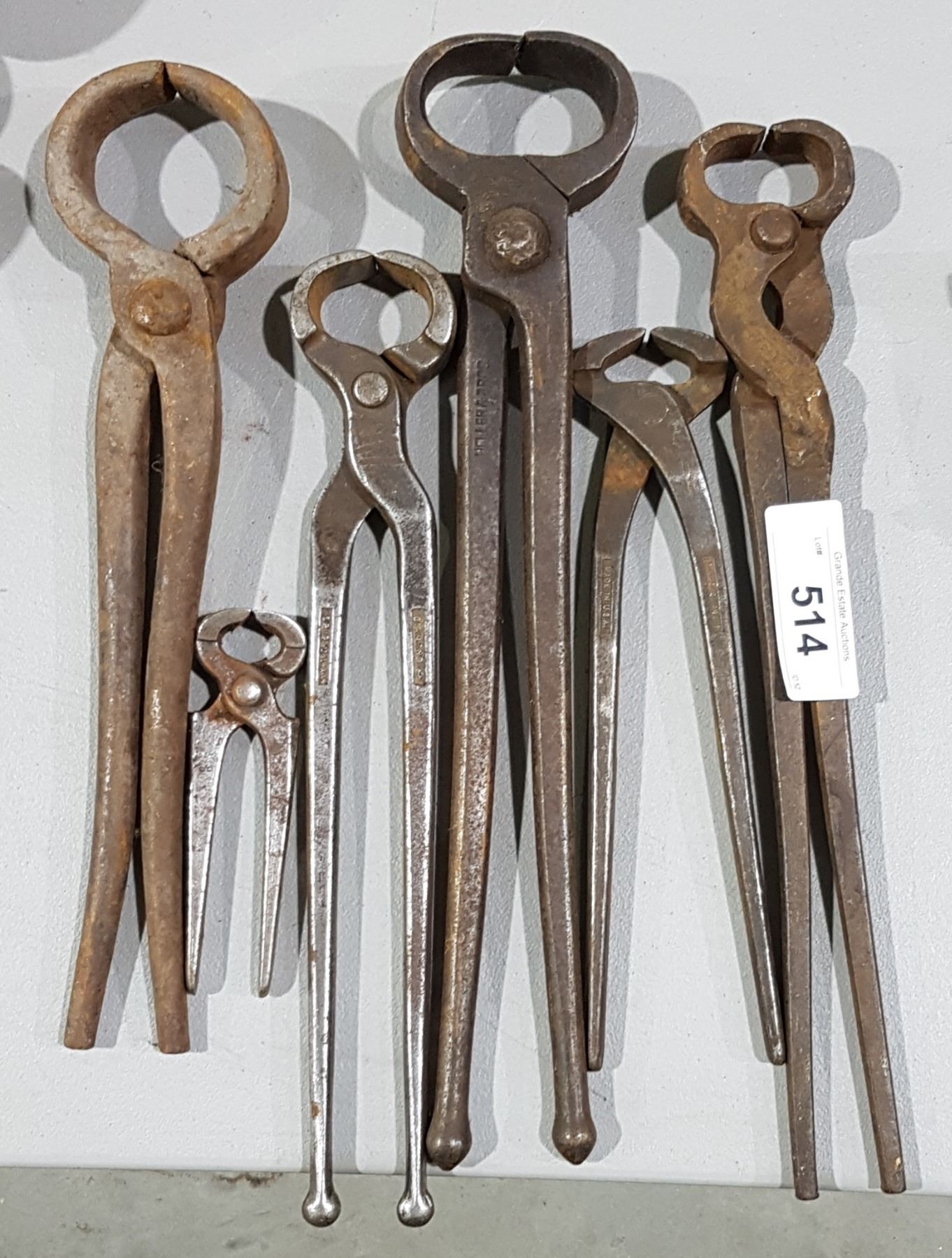 SIX ANTIQUE BLACKSMITH/FARRIER HAND TOOLS