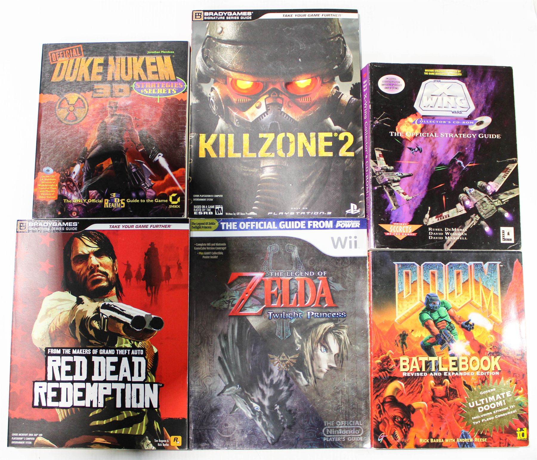 INCLUDES (1995) DOOM BATTLEBOOK REVISED AND EXPANDED EDITION, (1995) STAR WARS X WING STRATEGY GUIDE, (2009) KILLZONE 2, (2010) RED DEAD REDEMTION, (1994) DUKE NUKEM 3D & (2006) THE LEGEND OF ZELDA - TWILIGHT PRINCESS WITH TOTAL COMBINED PURCHASE PRICES OF $141.86 ON BACK COVERS.