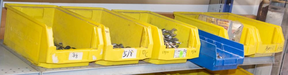 SIX BINS OF ASSORTED HAND WRENCHES