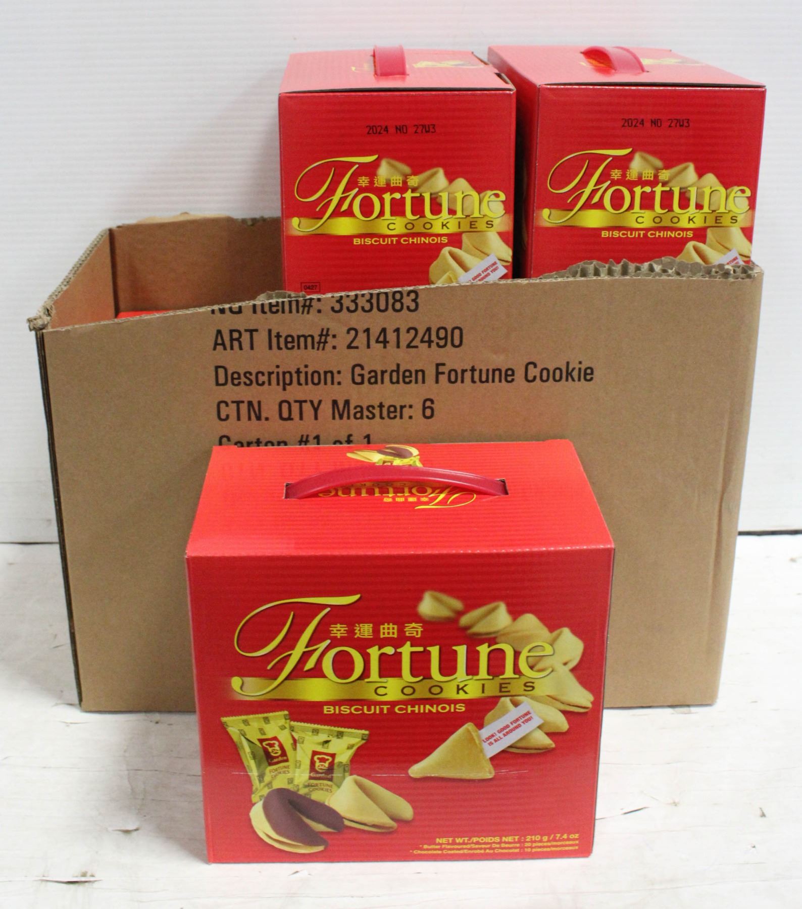 SIX BOXES OF INDIVIDUALLY WRAPPED FORTUNE COOKIES,