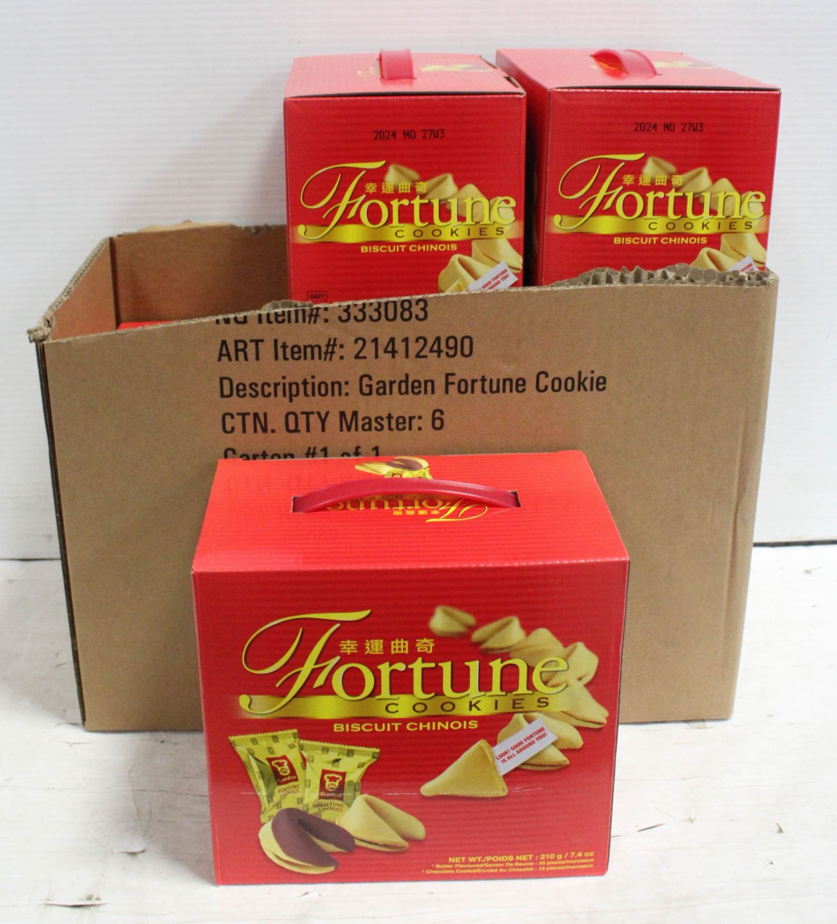 SIX BOXES OF INDIVIDUALLY WRAPPED FORTUNE COOKIES,