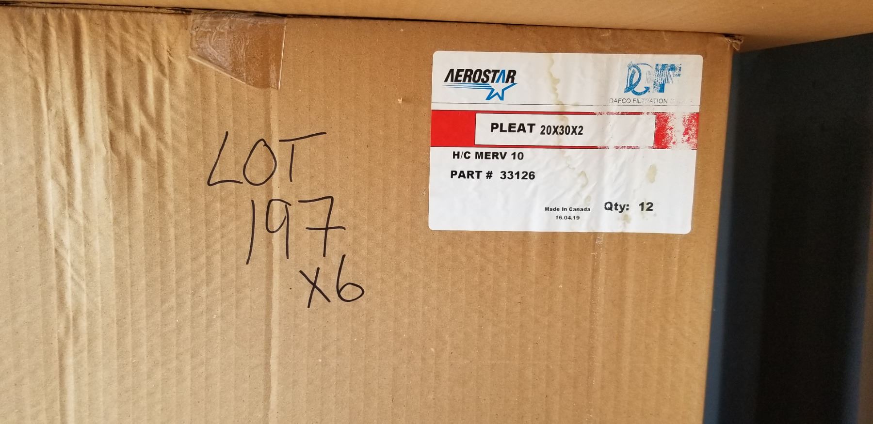 SIX CASES OF 12 EACH 20X30X2 AIRFILTERS