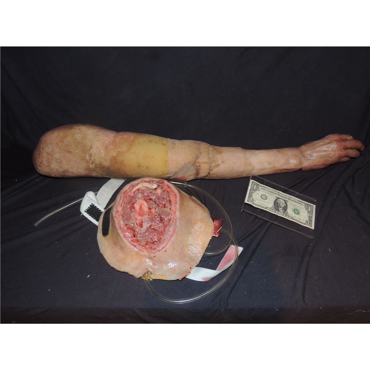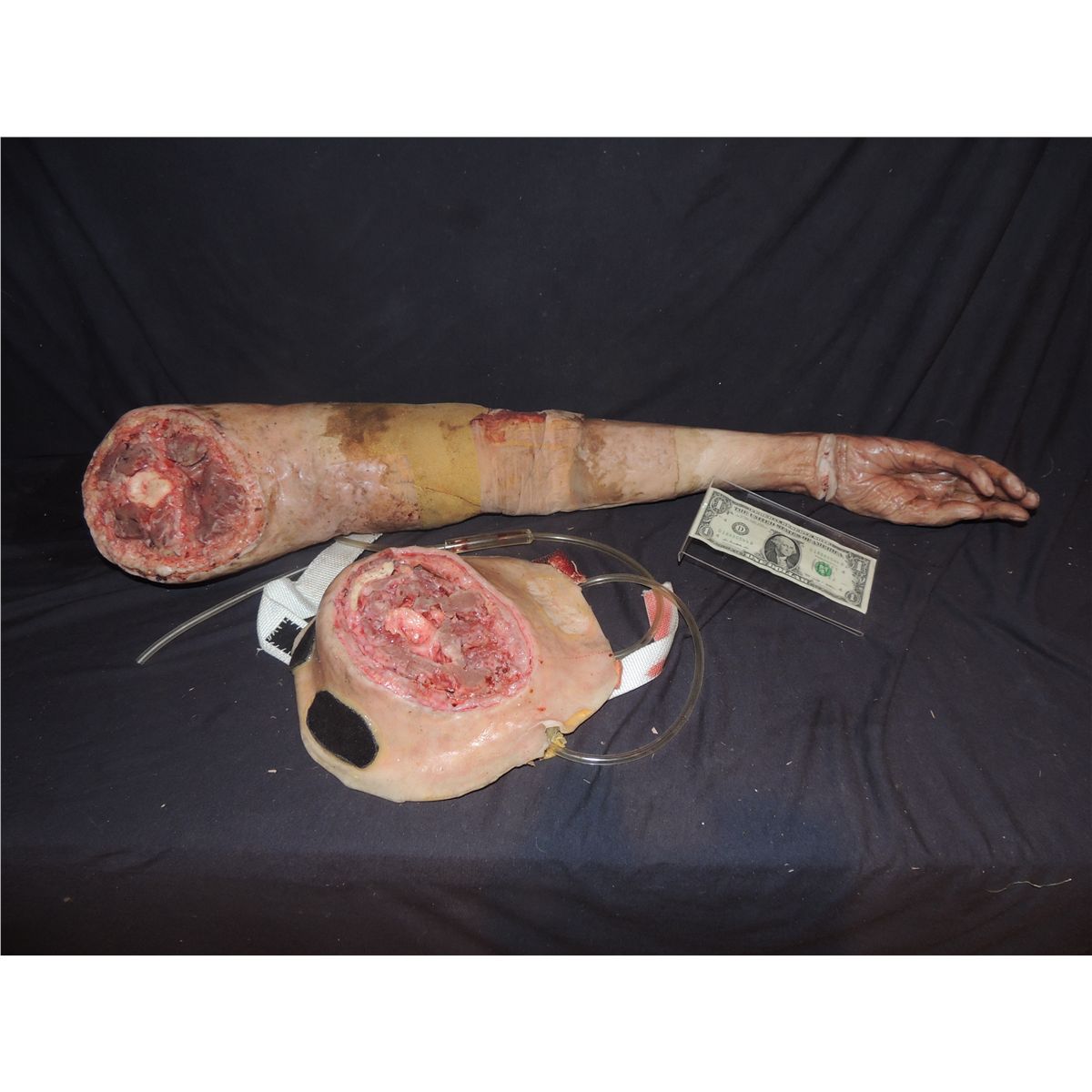 This is an incredibly well made hero silicone severed arm with the wearable and reusable stump appliance. I think this is from SIX FEET UNDER, but may be from TRUE BLOOD.