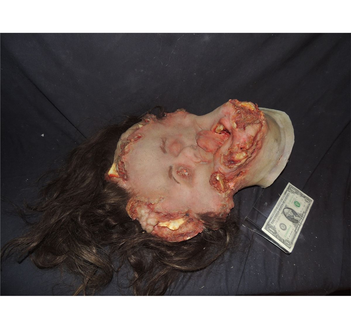 This is a woman's head that was crushed by a block of blue ice falling from the sky. Screen used and Matched in SIX FEET UNDER.