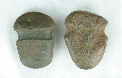 SIX FULL GROOVED AXES. Late Archaic to early Woodland, Circa 3000BC style-100AD style. SIZES: Largest is 6-1/2in. l x 4-3/4in. w; smallest is 3in. l x 2-1/2in. w. CONDITION: Good to very good. 9-25984-70 The Tennessee Collection of Prehistoric Indian Artifacts from the Allen Graves Estate. SPECIAL NOTE: We do not regularly sell Prehistoric Indian stone artifacts and therefore have very little experience and no expertise in this area. All of the following lots have come from the Collection of the Late Allen Graves of Tennessee. The collection was inherited some years back by his daughter, who now lives in Maine. This collection was consigned to us directly from her. We employed someone to generally identify styles and types, but as stated above, due to our lack of expertise in this field, we can not guarantee the age or origin of the following pieces. We are relying on you, the buyer, to determine to your satisfaction the origin and age of each item in the collection.