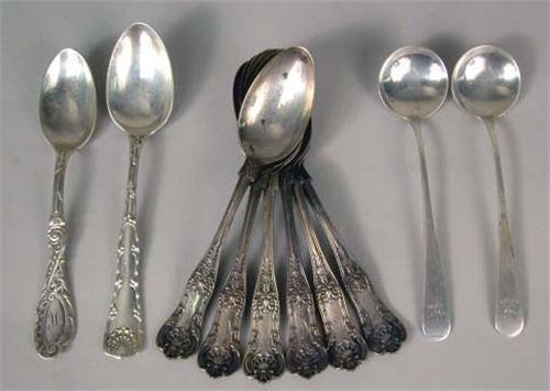 SIX GORHAM TEASPOONS; Monogrammed "C", "New Queens" pattern, 1895