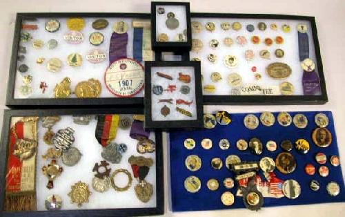 SIX GROUPS OF MISCELLANEOUS PINS AND BUTTONS; Together with a flag from Fort Dix