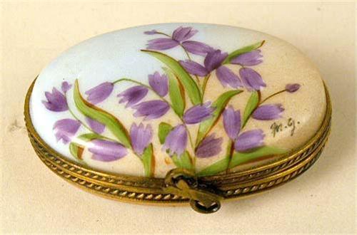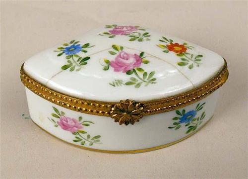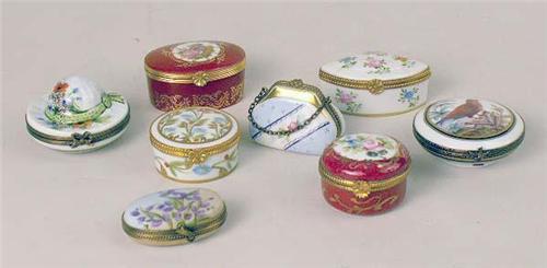 Largest, 2 1/2"l. Together with two similar porcelain hinged boxes,