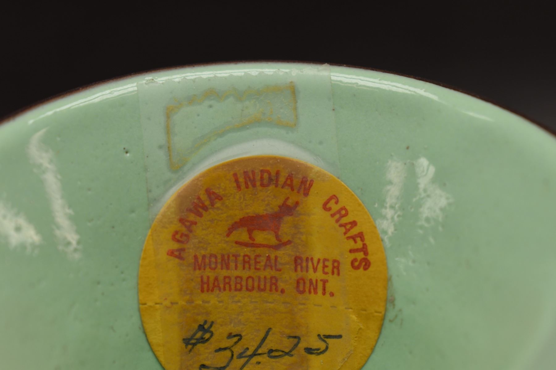 1980 six nation-Kenyengeh Indian ceramic pot with carved design signed Six Nations Reserve Kenyengeh signed JS 6" x 4.25"