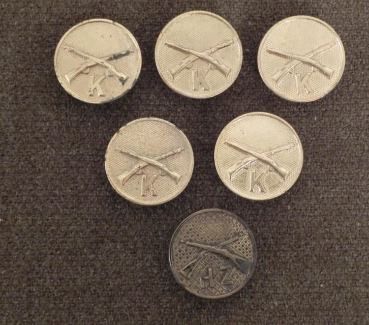 SIX ORIGINAL WWI DOUGHBOY COLLAS BRASS-WITH SCREW BACKS ALL COMPLETE