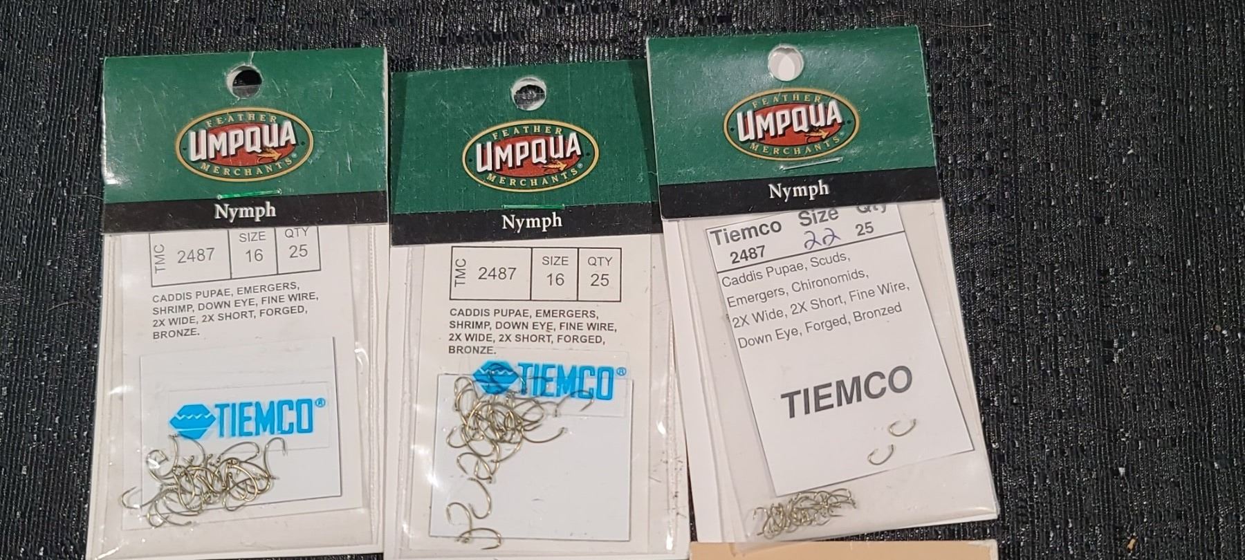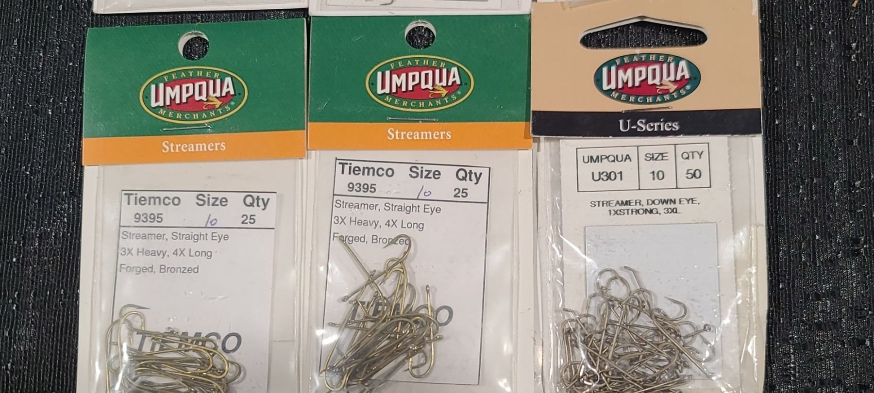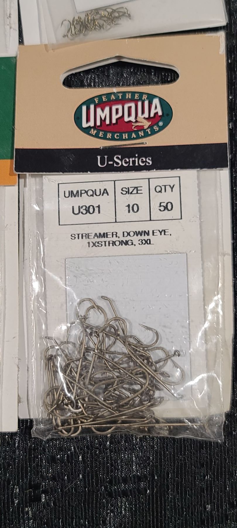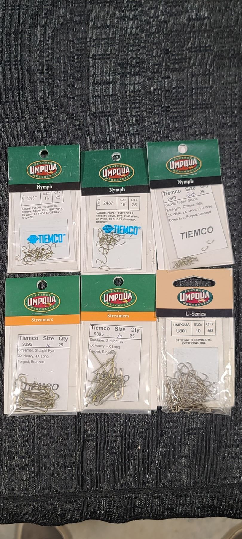 SIX PACKS OF UMPQUA HOOKS - THREE PACKS OF NYMPH AND TWO PACKS OF STREAMERS AND ONE PACK OF U-SERIES