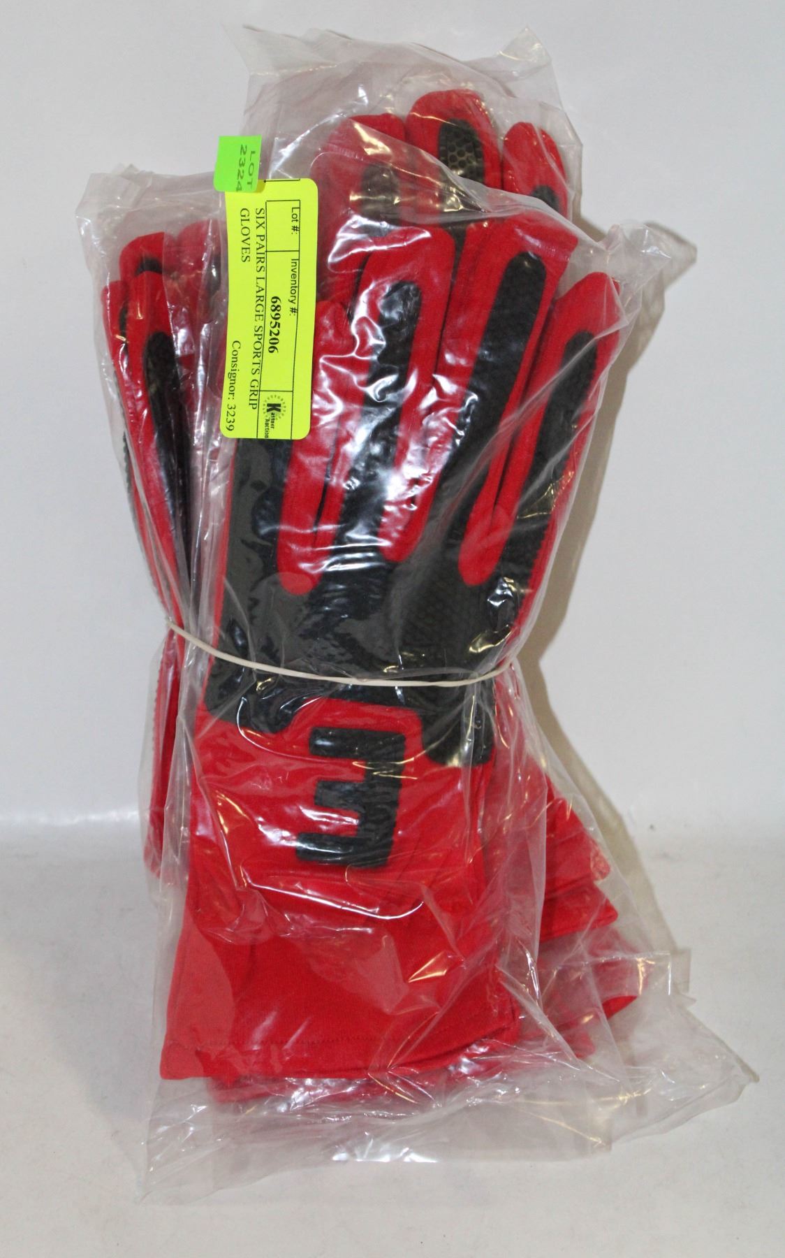 SIX PAIRS LARGE SPORTS GRIP GLOVES